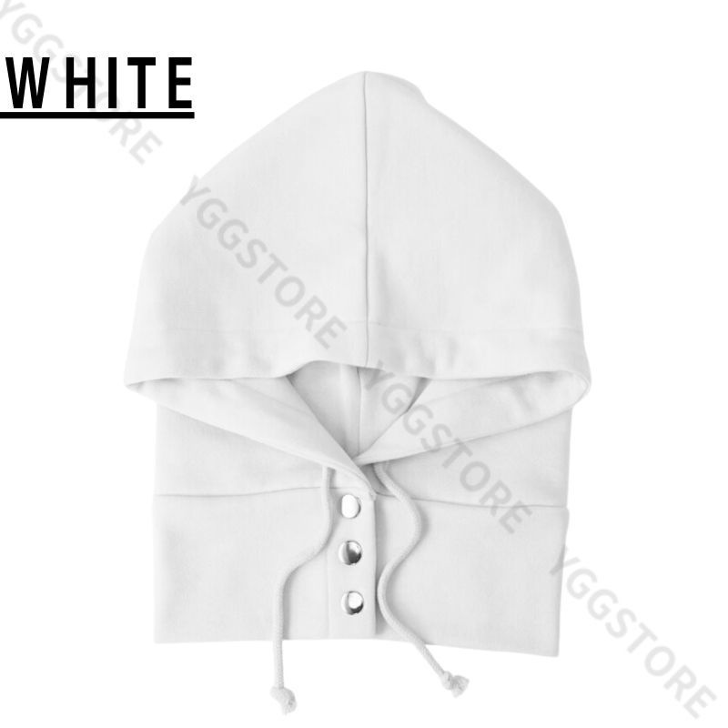 - バラクラバ ネックウォーマー レディース おしゃれ フード付き スウェット スヌード 紐付き パーカー 防寒 スノーボード ボタン ホワイト