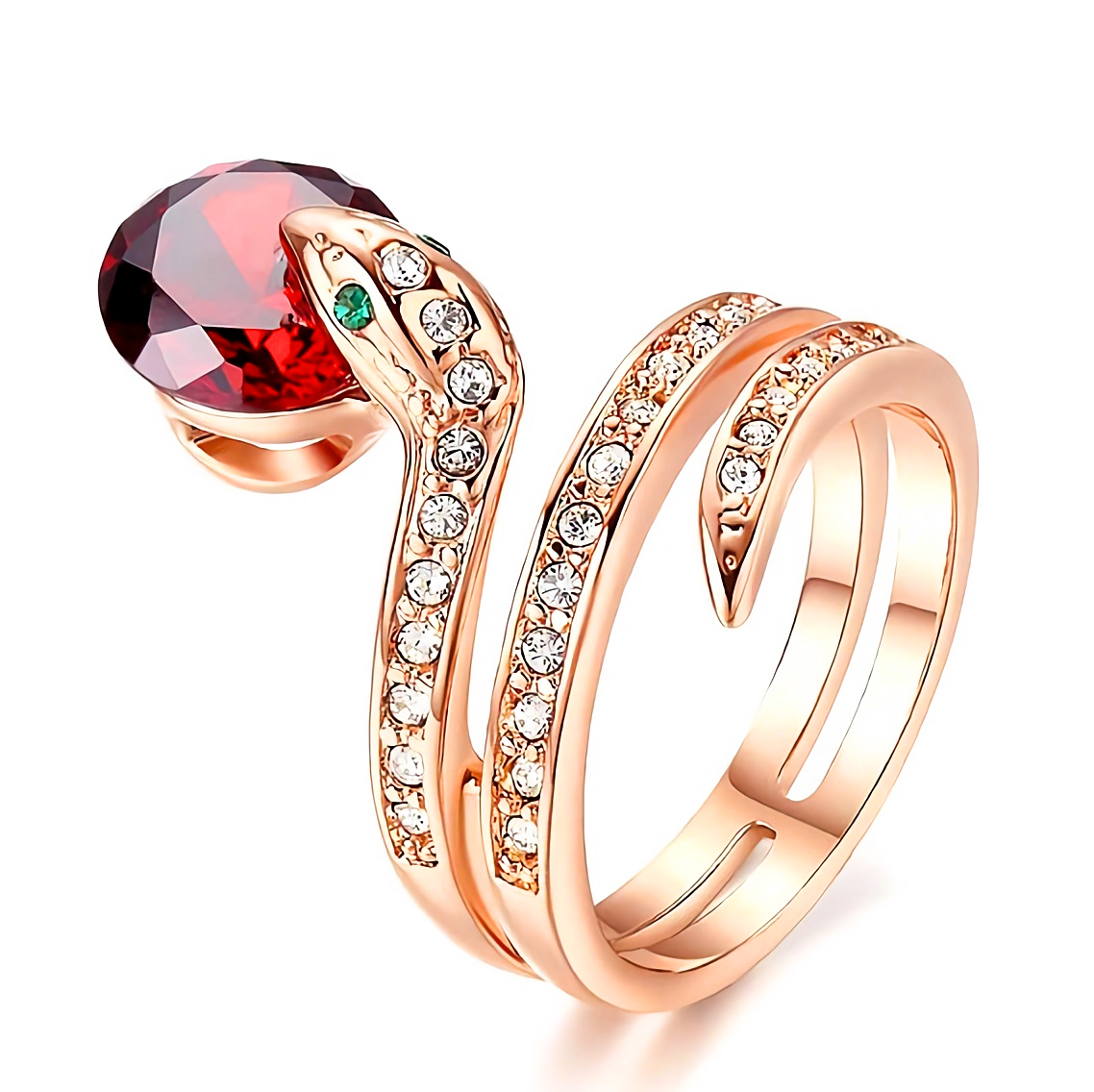 > 新品★送料無料★幸運の蛇 紅玉ルビーエメラルド瞳 ダイヤモンド K18PGFゴールドリング 誕生日プレゼント旅行連休初春ギフト 国内発送
