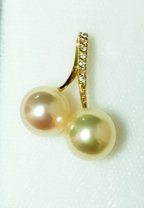 - あこや 本真珠 ペンダントトップ チャーム ナチュラルゴールドカラー 天然ダイヤモンド K18 アコヤ真珠 可愛い 素敵! 稀少 未使用品