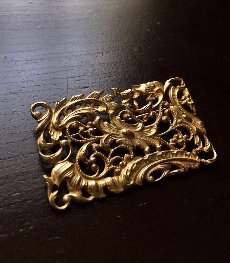 - 【ミリアム・ハスケル】MIRIAM HASKEL アンティーク コスチュームジュエリー 金 ブローチ 4.6×2.8cm ヴィンテージ