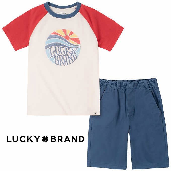 - 新品 110 ★ コストコ ラッキーブランド 上下 セット 半袖 Tシャツ ハーフパンツ 4T ホワイト ネイビー セットアップ LUCKY BRAND アメカジ