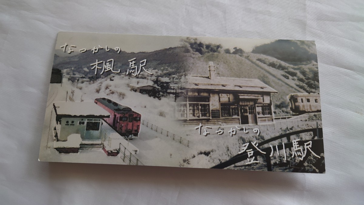 - ▽JR北海道▽なつかしの楓駅・なつかしの登川駅▽記念オレンジカード1穴使用済4枚組台紙付