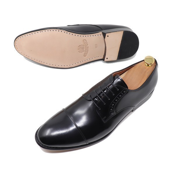 > 27.5cm 本革 外羽根 ストレートチップ レザーソール 革底 ビジネスシューズ ブローグ ハンドメイド マッケイ製法 ブラック 1007