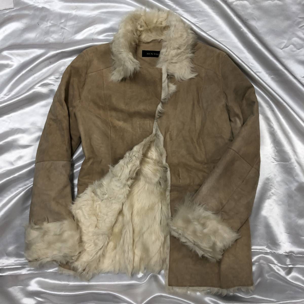 - 【SUN ROSE】 毛皮コート レディース ジャケット 上着 羊 皮 毛皮 ファー ブラウン ホワイト 中古