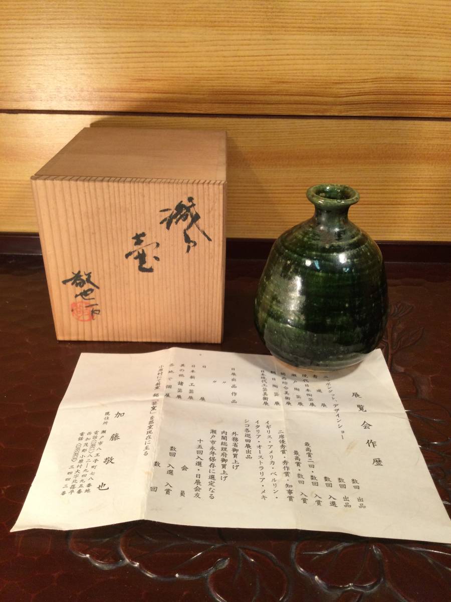- 美品 加藤敬也 織部 壺 花入 花瓶 花器 華道 茶道 茶の湯 茶道具 蔵出し