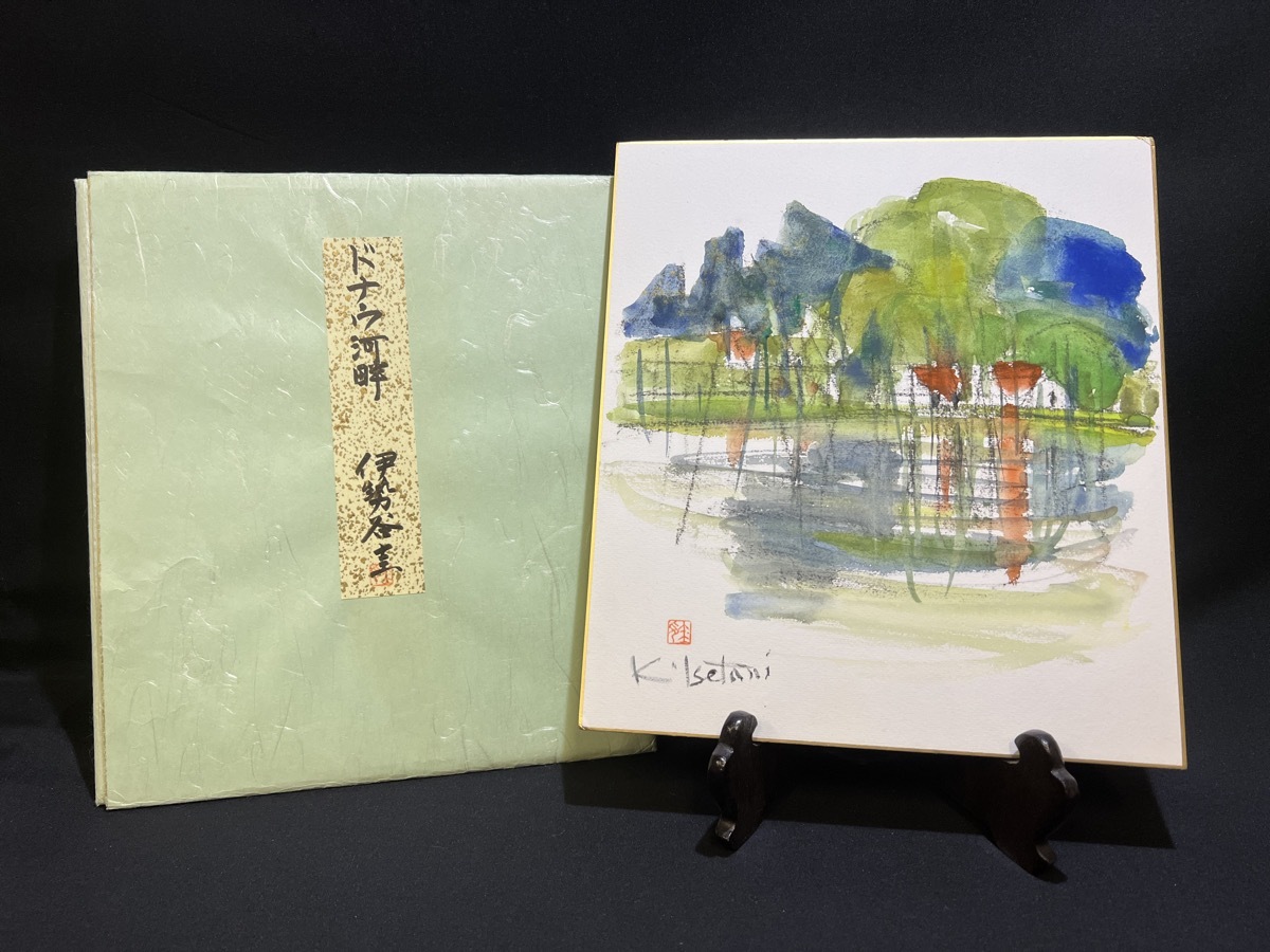 『色紙画「ドナウ河畔 一九八九」伊勢谷圭 女流画家 水彩 二科会 特選金賞審査員 洋画 日本美術家連盟』