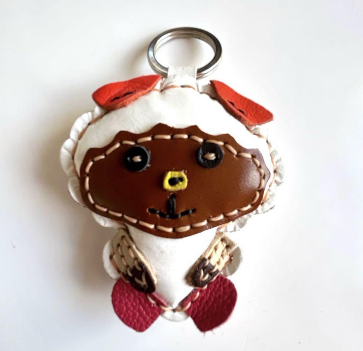 - ★送料無料★新品 本革キーホルダー ハンドメイド キーリング バッグチャーム レザー チャーム ひつじ 羊 干支