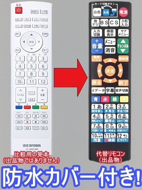 - 【代替リモコン102】防水カバー付 アイリスオーヤマ LT-ARC3W 互換 送料無料 (LT-32C320W LT-40C420W用) IRIS OHYAMA