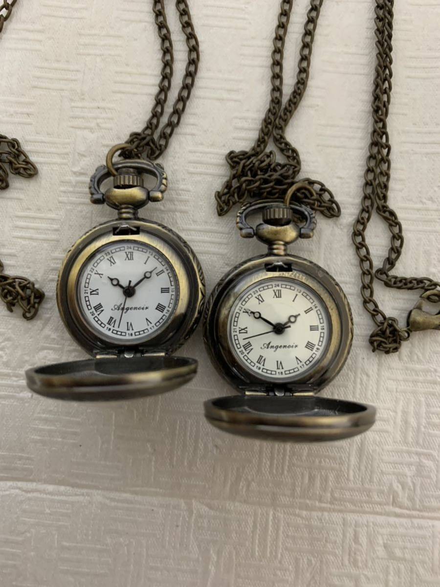 - angenoir懐中時計 ネックレス 2個セット/アンティーク風/ペンダントタイプ/現在動作不動/部品取り用/留め具かたい/擦れ等/ジャンク扱/①