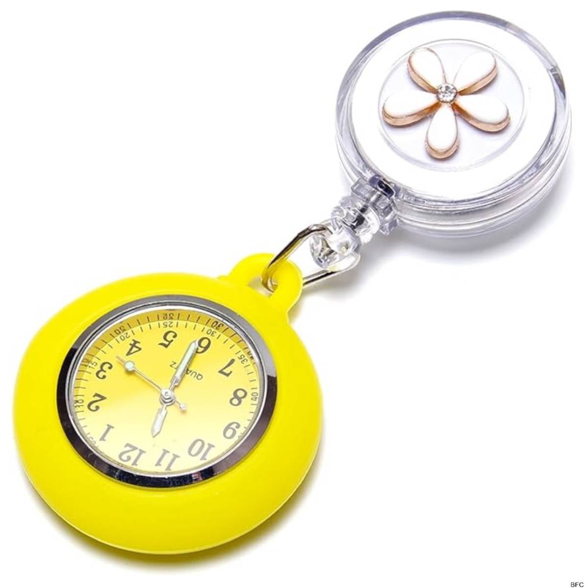- ナースウォッチ イエロー 蓄光 リール式 懐中時計 小型 シリコン レディース オシャレ かわいい 送料無料 シンプル