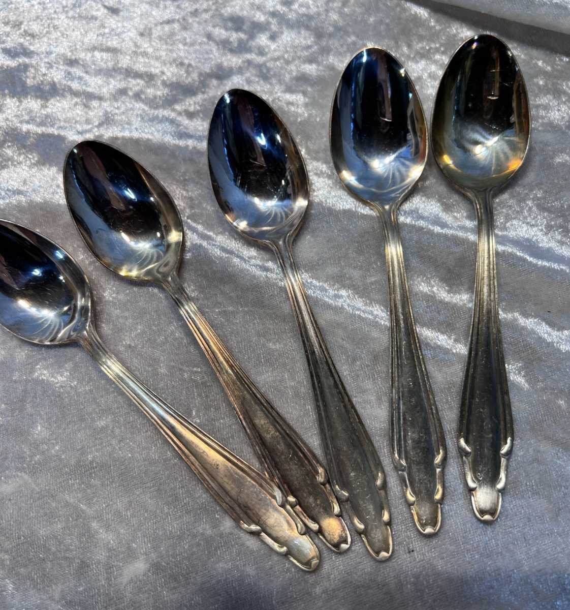 - 【雑貨】スプーン5本セット ニッケルシルバー 刻印あり ディスプレイ用品 インテリア用品 骨董品 アンティーク