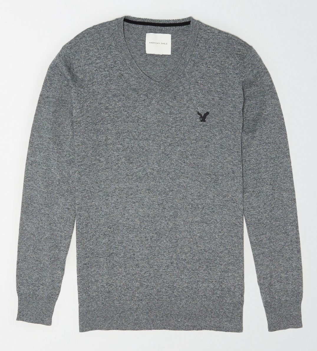 - セール! 正規品 本物 新品 アメリカンイーグル Vネック セーター AMERICAN EAGLE 上品 オシャレ シルエット綺麗 大人の グレー 秀逸 S ( M