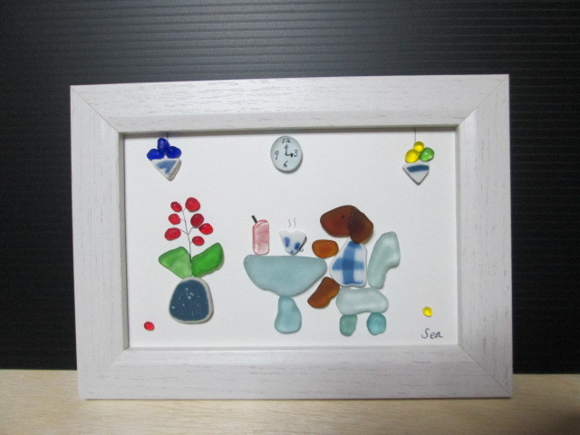 - ★シーグラスアート 犬 おやつタイム インテリアⅢ★
