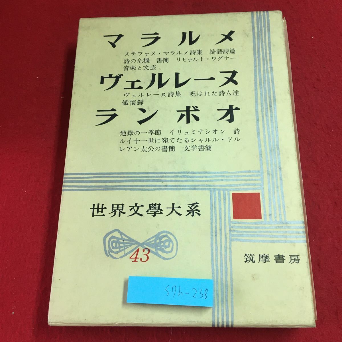 > S7h-238 マラメル ヴェルレーヌ ランボオ 世界文学大系 43 昭和37年2月28日 発行 筑摩書房 文学 詩集 作品集 外国人作家 和訳 解説 年表