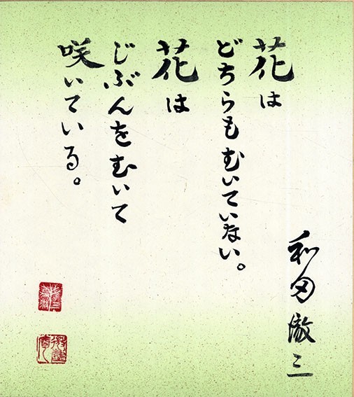 - 和田徹三色紙「花はどちらもむいていない。・・・」 毛筆 色紙 サイン 印 27×24
