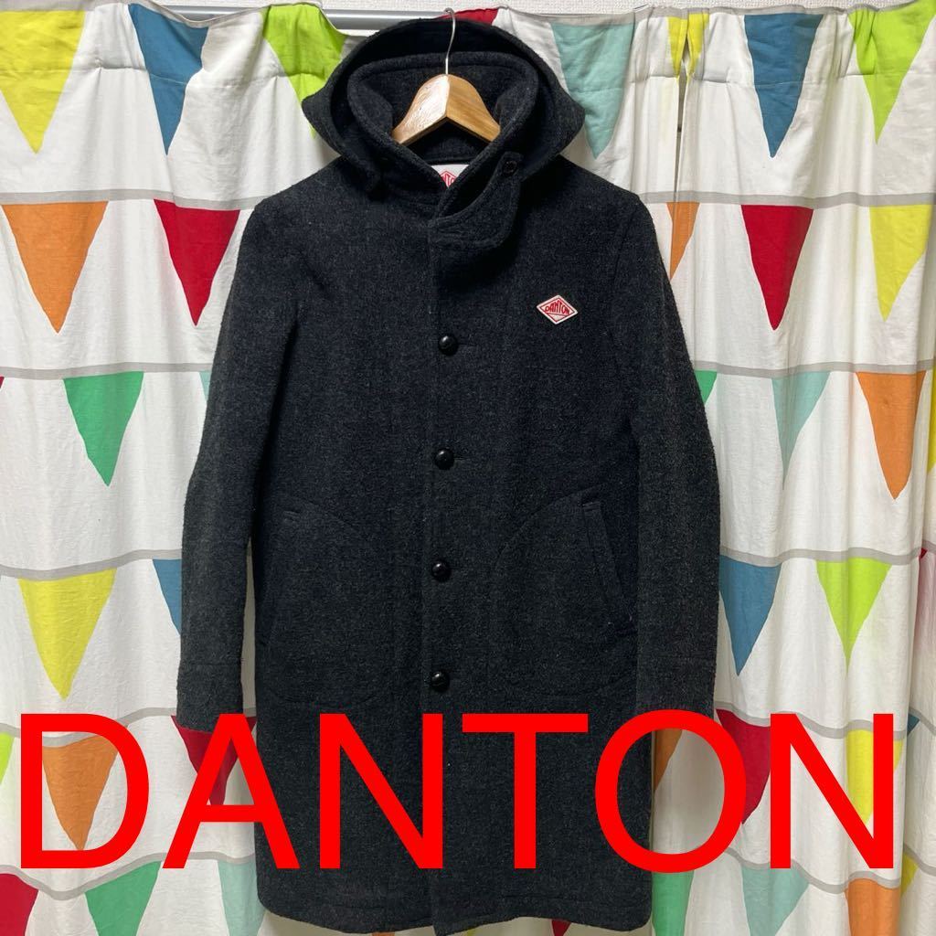- ダントン DANTON ウールモッサコートフード 付き36美品チャコールグレー正規店購入
