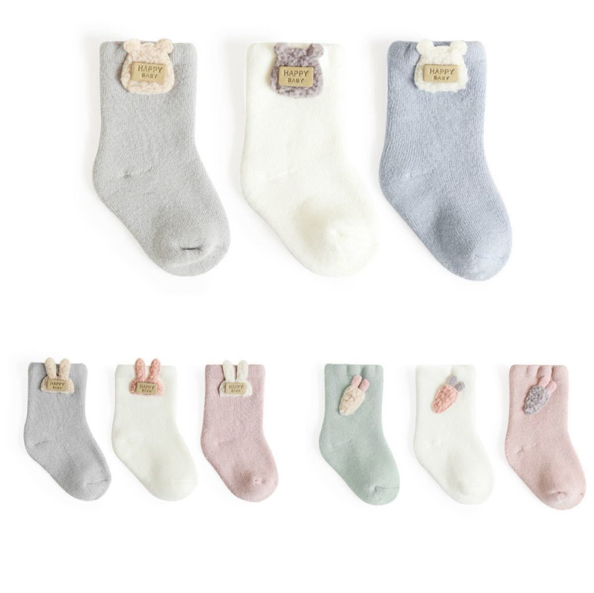 - ★選べる3足★ベビー 靴下 ソックス ワンポイントソックス 厚手 ガールズ ボーイズ 13-15㎝
