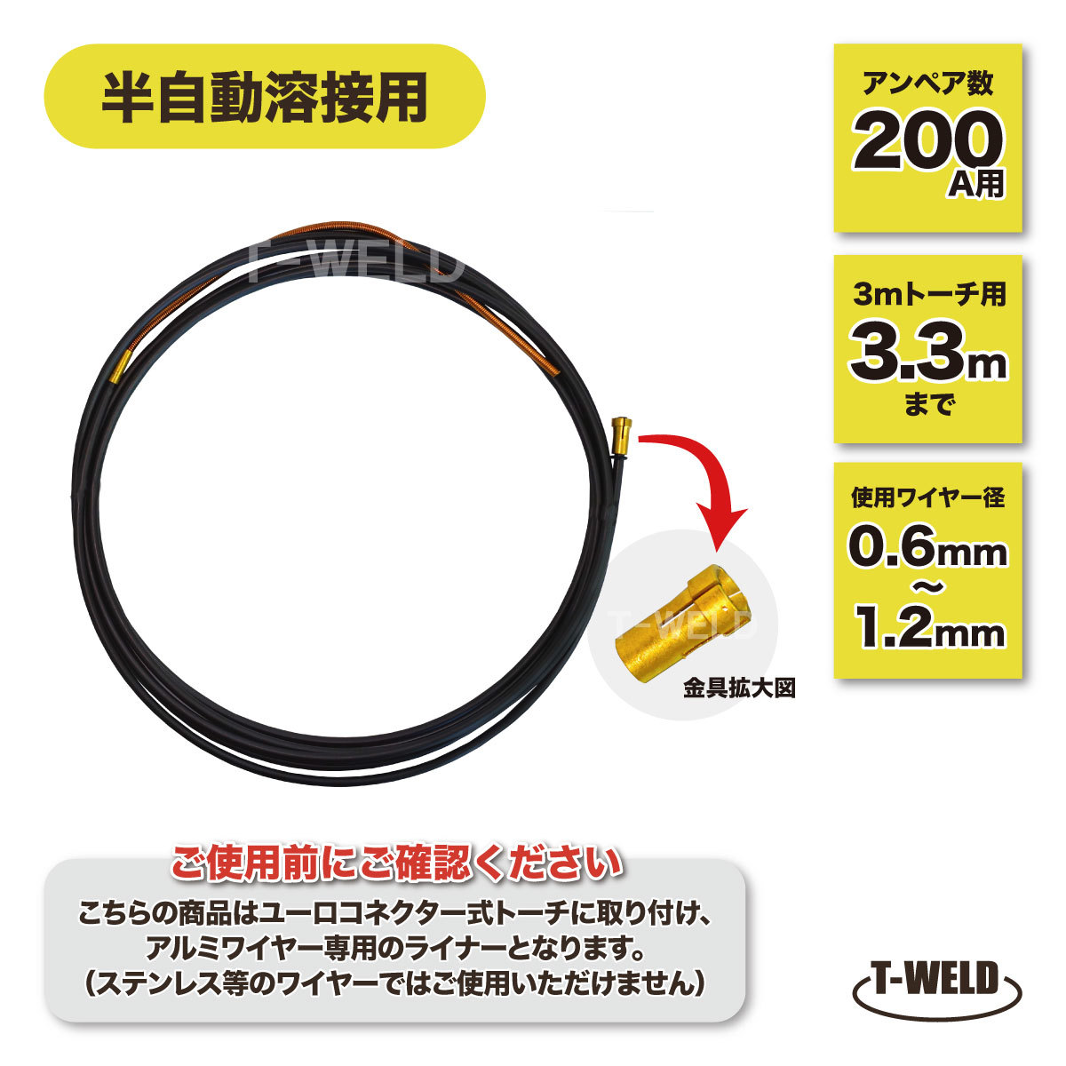 - 半自動溶接 CO2 トーチ ユーロコネクター 200A×3.3m アルミワイヤー用 石墨製 ライナー ( コンジェットチューブ )1本