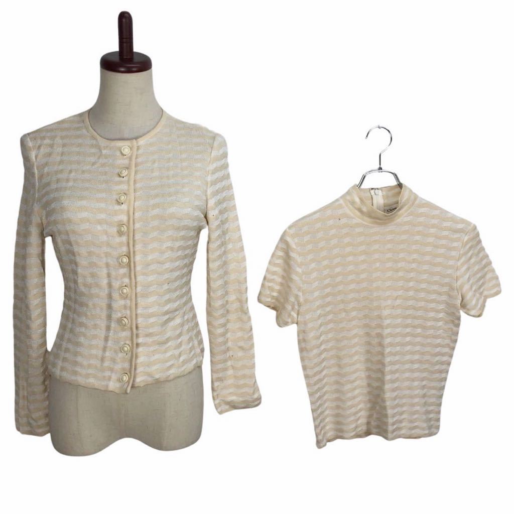 - Vintage CHRISTIAN DIOR クリスチャンディオール レディース ボーダー ニット アンサンブル セットアップ L表記