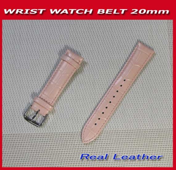 - ★本牛革!腕時計ベルト 交換用ベルト/クロコ型/幅20mm新品即決!肌色 サーモンピンク♪クロコ調! ★★