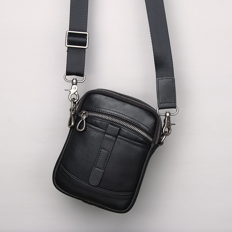 - ウエストバッグ 2WAY 本革 牛革 メンズ ショルダーバッグ 斜めがけ ミニバッグ ベルトポーチ スマホポーチ 通勤