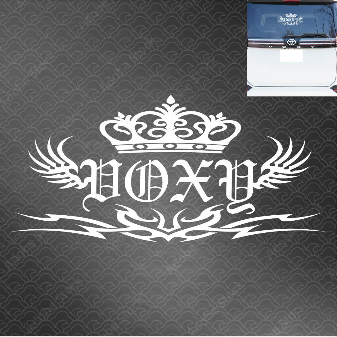 - トヨタ ヴォクシー 王冠 羽 トライバル カッティングステッカー 白色