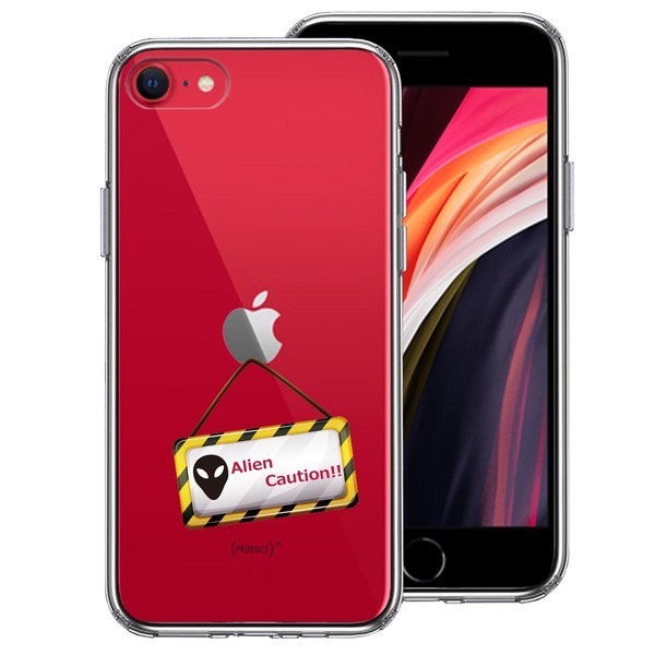 - iPhoneSE ケース 第3世代 第2世代 クリア エイリアンに注意 スマホケース 側面ソフト 背面ハード ハイブリッド