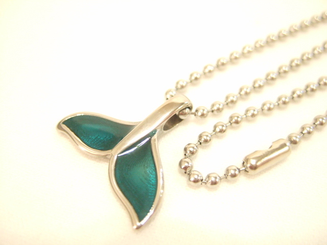 > 横浜最新 魅惑のホエールテール♪ブルー/鏡面シルバー リバーシブル ステンレスペンダント&ステンレスチェーン50cm 送料220円ξbalnξξ35