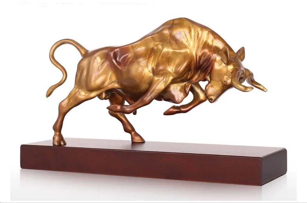 - 即納!風水的 幸運を呼ぶ ブロンズ製チャージング・ブル金色の雄牛の置物彫像 牡牛彫刻 開運ギフト相場上昇