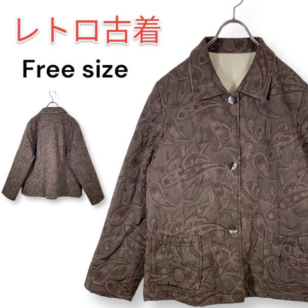 - 日本製 リバーブル ジャケット ペイズリー柄 刺繍 ブラウン 茶 フリーサイズ