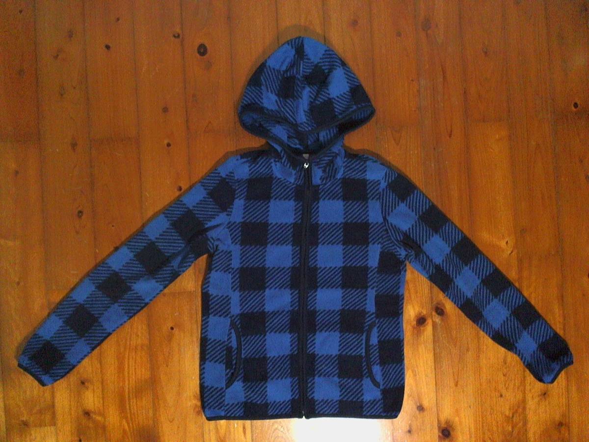 > ☆微難有☆ユニクロ☆UNIQLO☆フリース ジップアップ パーカー ジャケット ジャンパー M 青黒 チェック