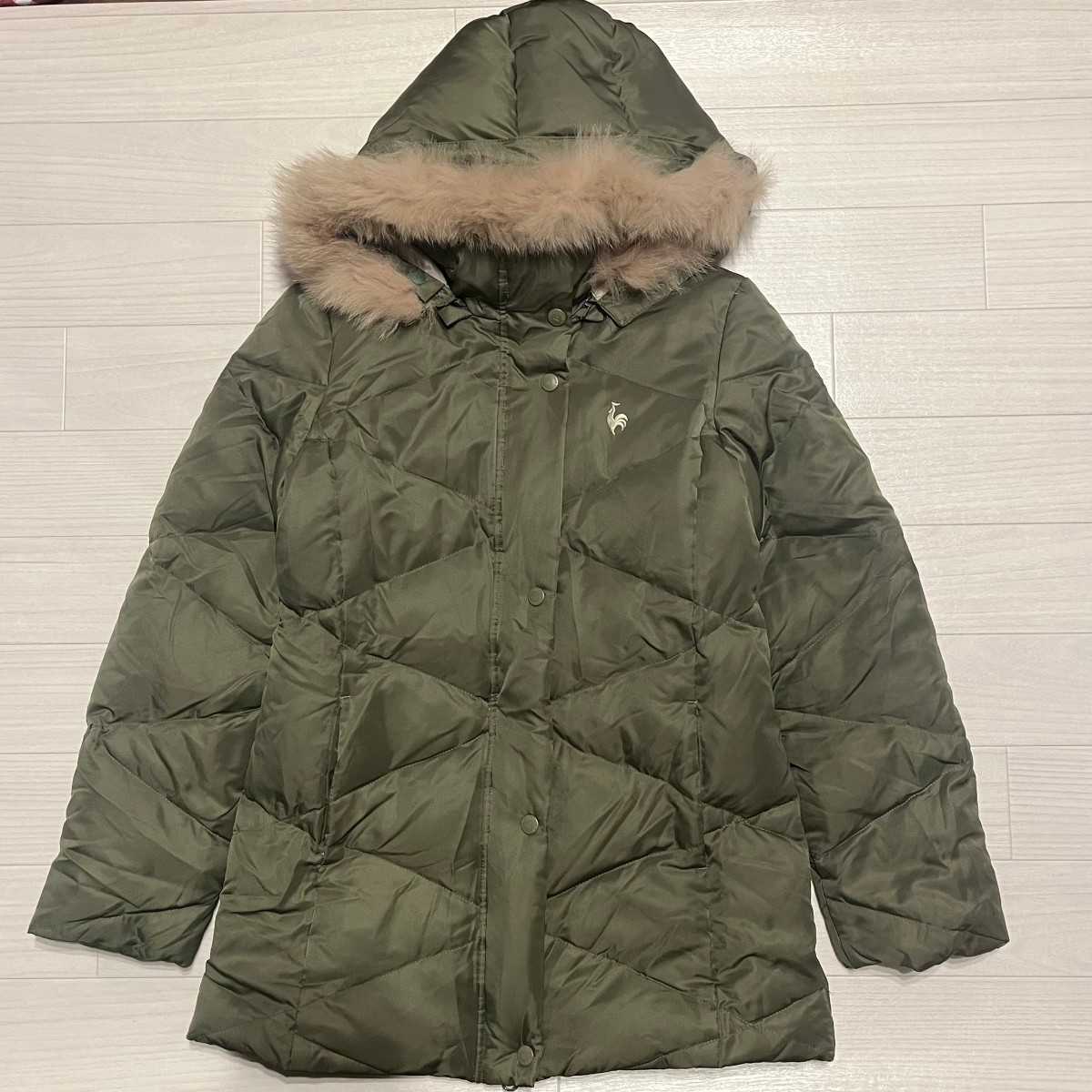 - le coq sportif ルコックスポルティフ ダウンコート アウター 取り外し可能ファーフード 天然フォックスファー きつね カーキ サイズM