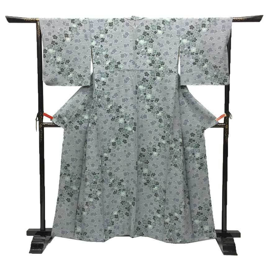 > 京やC075 正絹 小紋 梅 梅柄 UME 梅文様 ブルーグレー 寒色系 絹100% 伝統工芸 ちりめん お仕立て上がり ガード加工済み 美品