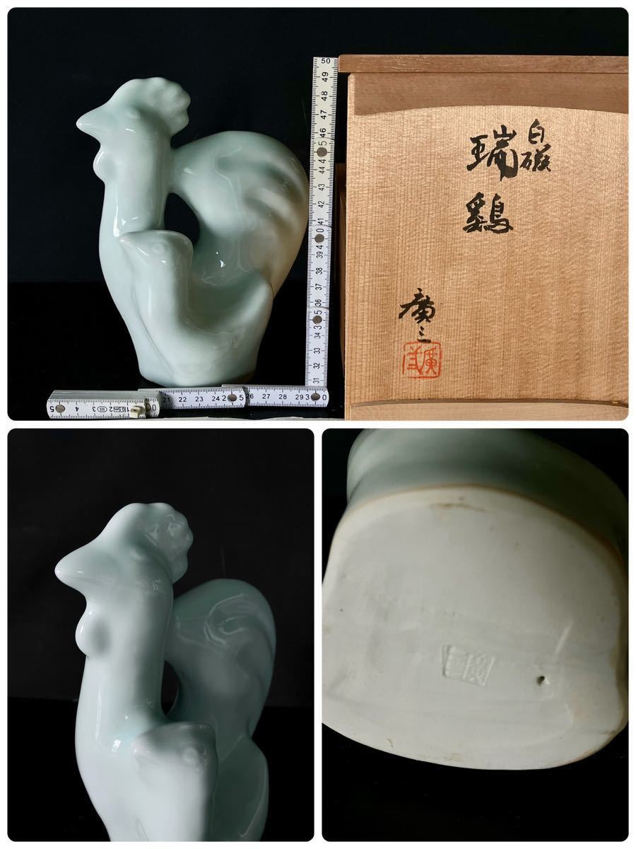 > R-58*干支置物*京焼.清水焼*市川廣三 作*白磁※瑞鶏*置物*美術工芸品*陶芸*共箱共布*陶歴高さ19.5