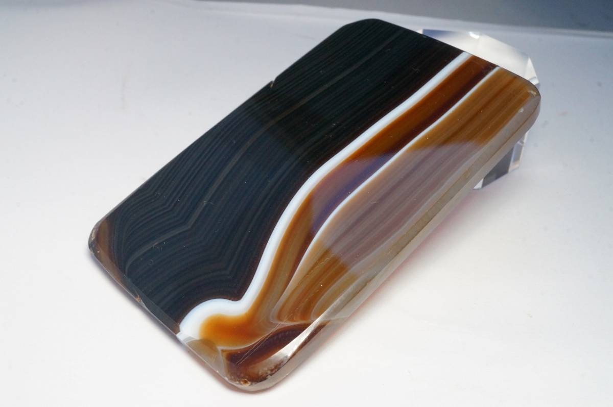- 【即決特別価格!】希少!昔の在庫なので上質!縞模様が綺麗な上質ブラジル産瑪瑙・メノウ・めのう・メノー・ピクチャーメノー板原石252ct