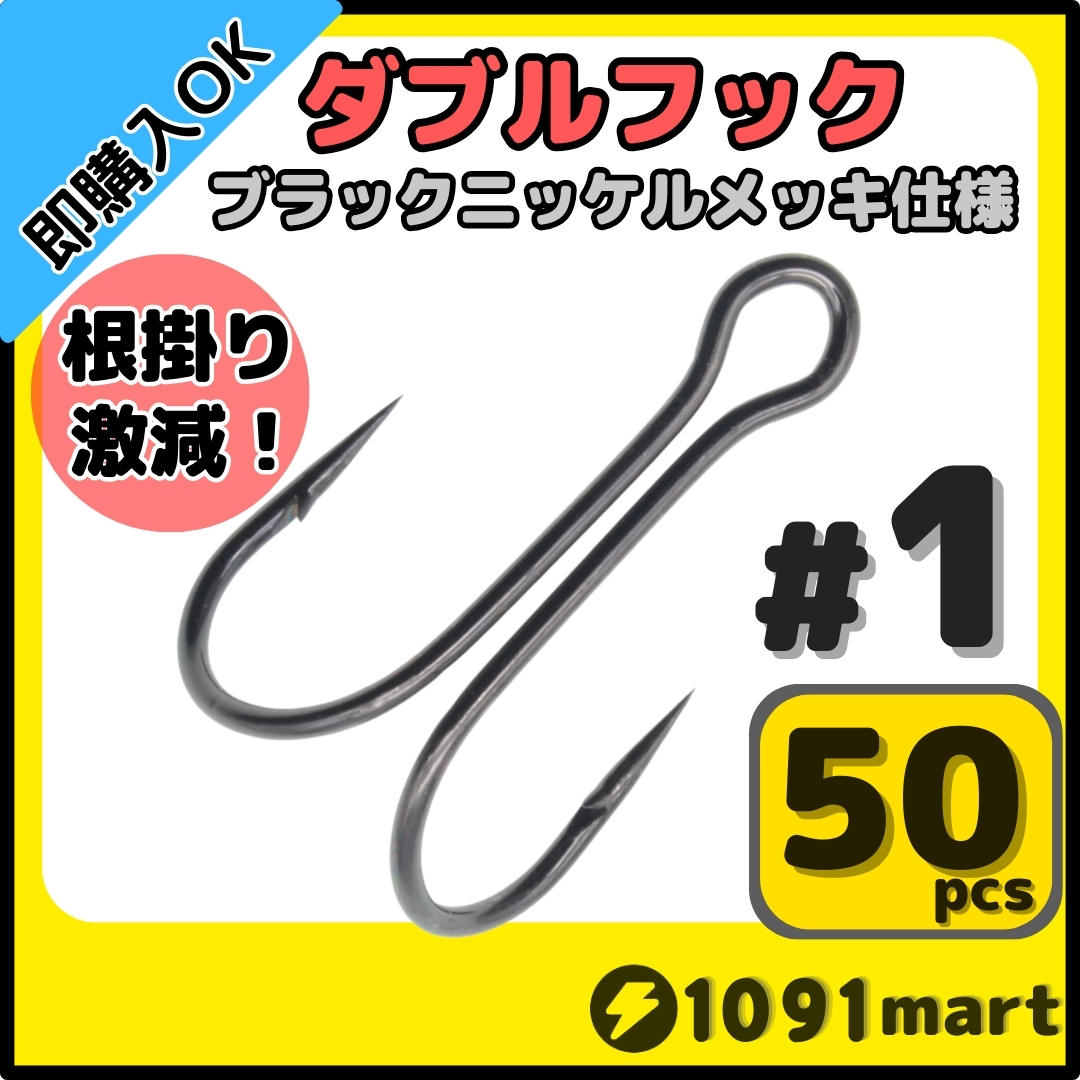 > 【送料180円】高炭素鋼 ダブルフック ブラックニッケルメッキ仕様 #1 50本セット ソルト対応 メタルバイブ バイブレーションに!