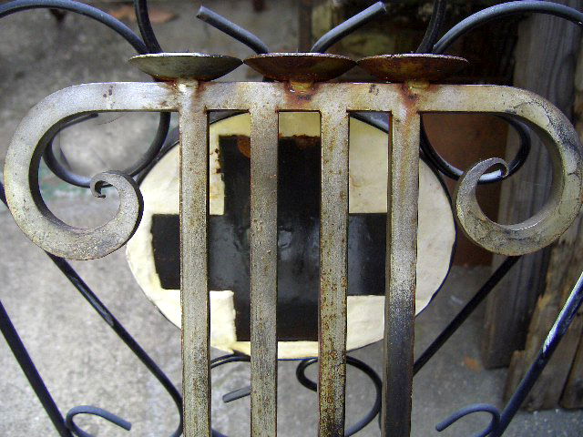 > 卍 VINTAGE Wax stand Industrial イマジネーション 摩訶不思議 渦巻く蝋台 極太三本 インダストリアル ロートアイアン ジャンクスタイル