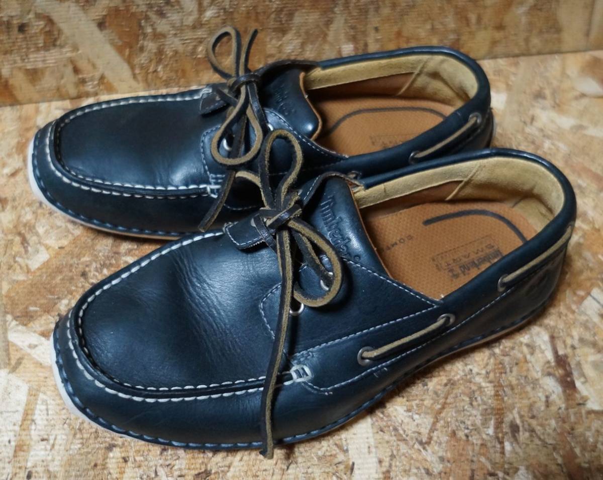 > Timberland 本革モックシューズ US7W 紺 74014 ティンバーランド
