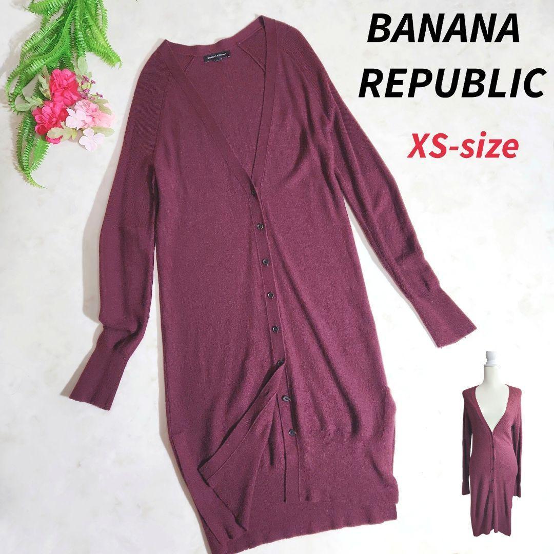 - BANANA REPUBLIC メリノウール混ロング丈カーディガン 表記サイズXS ワインレッド エルボーパッチ付き82717