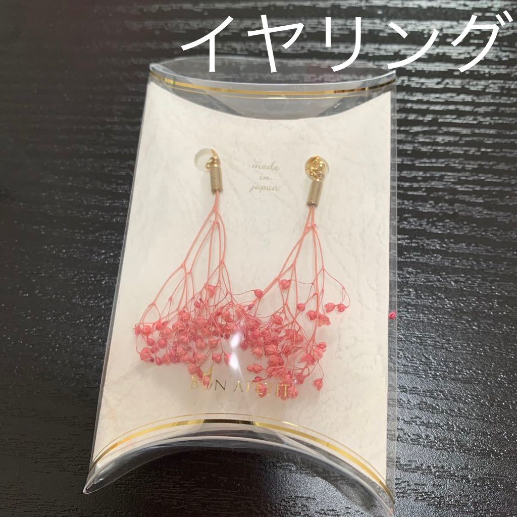 - くすみ ピンク ドライフラワー かすみそう スプリング イヤリング ゴールド D