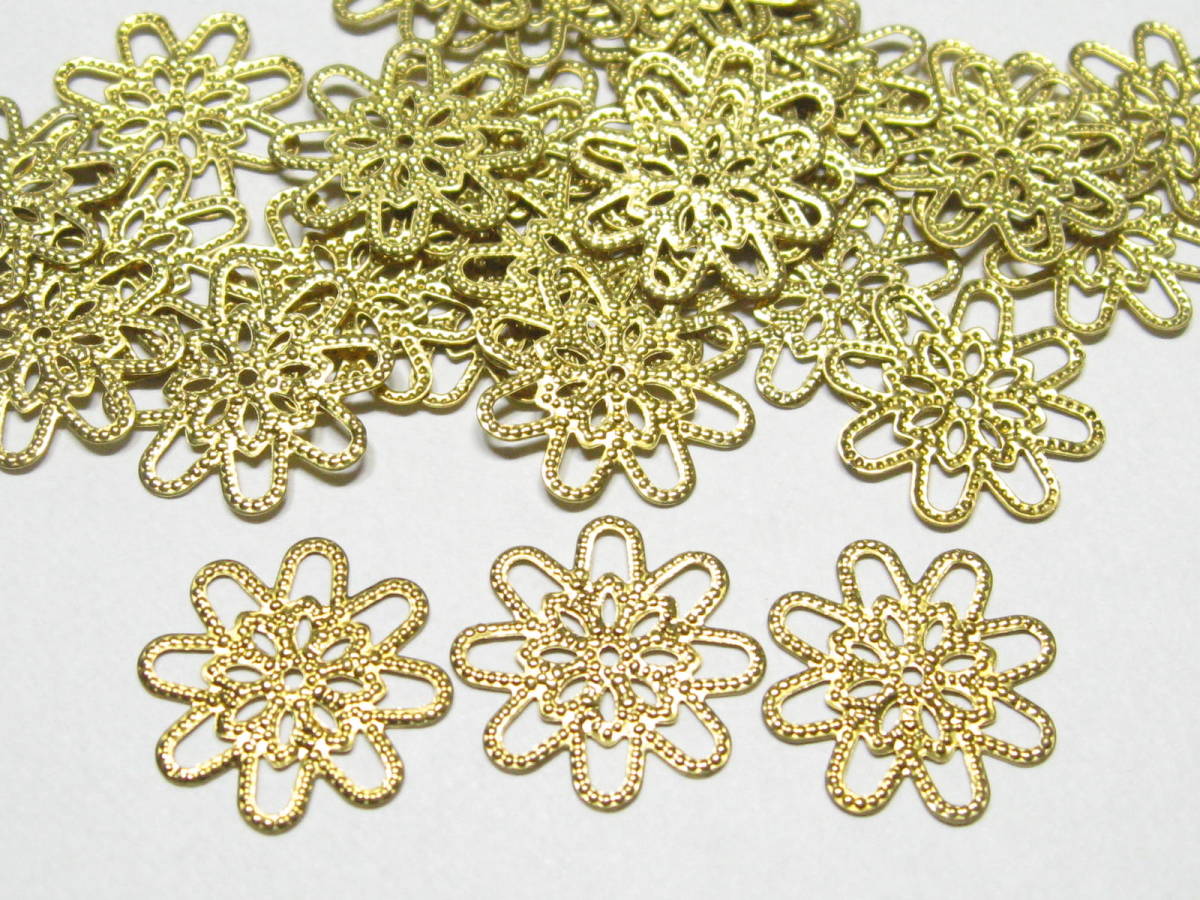 - 透かしパーツ チャーム フラワー 黄銅製 100枚 ★★Ⅲ