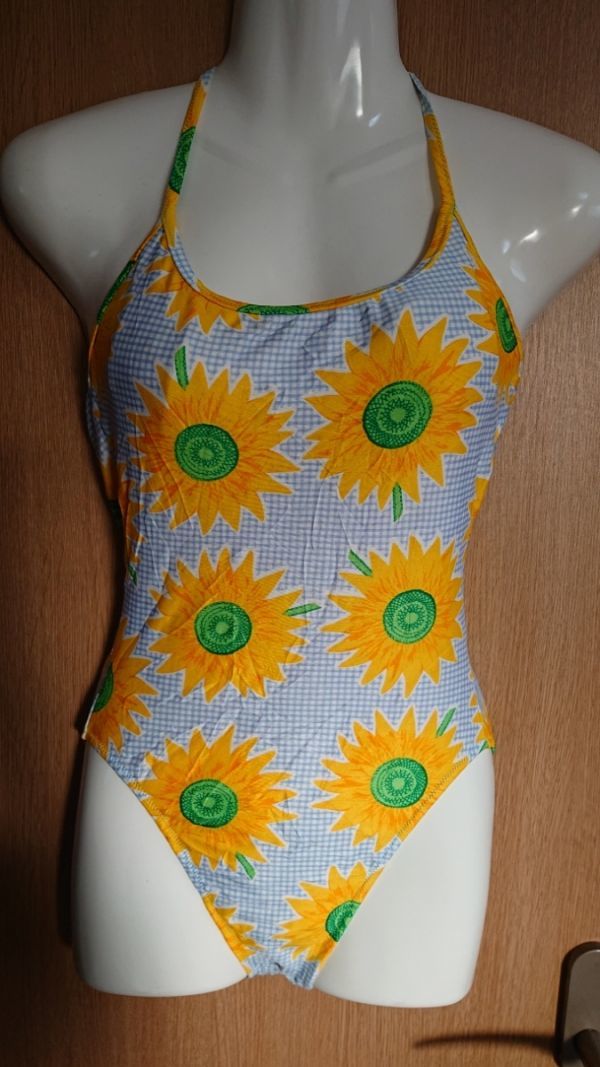 - ☆JUNKO SHIMADA☆ひまわり柄のワンピース水着☆150☆M☆総裏地あり☆日本製☆(株)ルシアプランニング☆