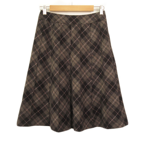 - ハリス HARRISS スカート タック チェック 36 茶 ブラウン 黒 ブラック レディース