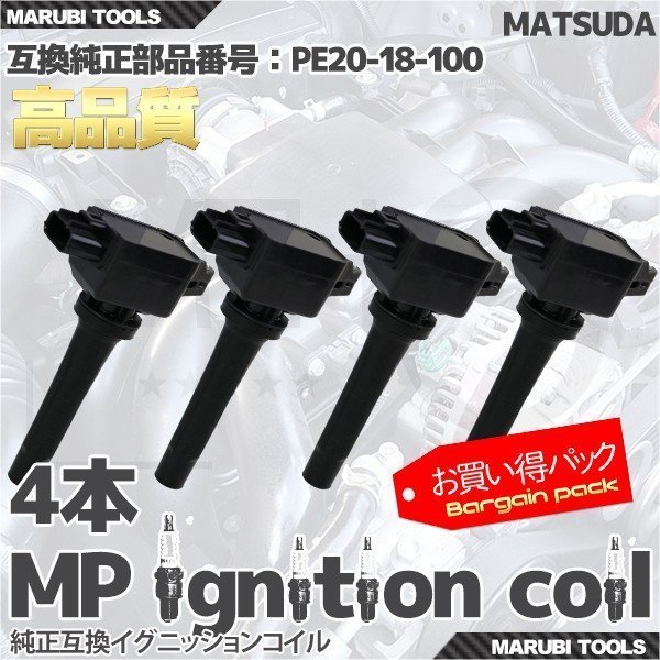 > 【送料無料】イグニッションコイル マツダ マツダ6 CX-5 他 PE20-18-100 等 4本 4Pinタイプ-053