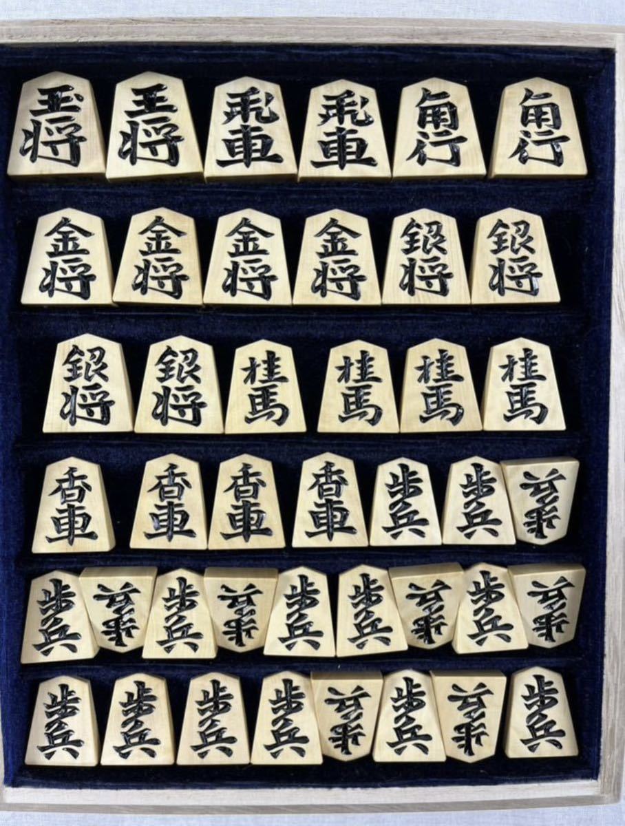 - 日向作 御蔵島黄楊 班入柾目 紫電書 彫駒 未使用新品