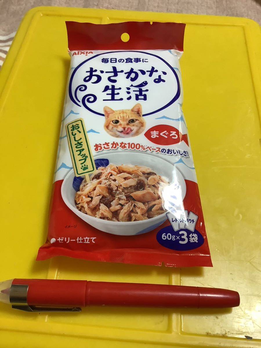 > 希望数や色変更可要連絡 猫餌 銘柄別お試し A おさかな生活 60g 3食入1袋(赤1) 送料負担別1-2出品 賞味2026年以降 miniは2袋迄(312)