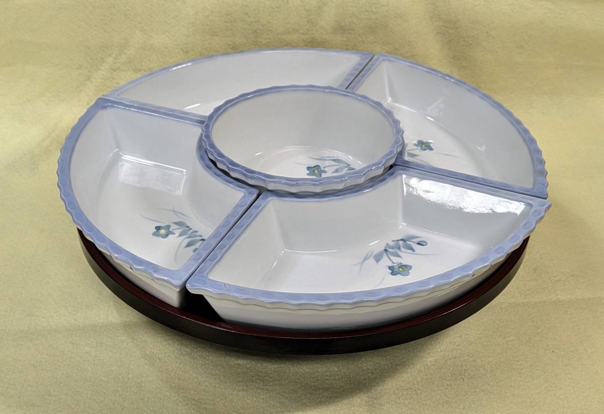 - ★回転式オードブル皿 34cm 回転台・食器5点セット 扇皿・丸鉢「正幸」 陶器★状態良★
