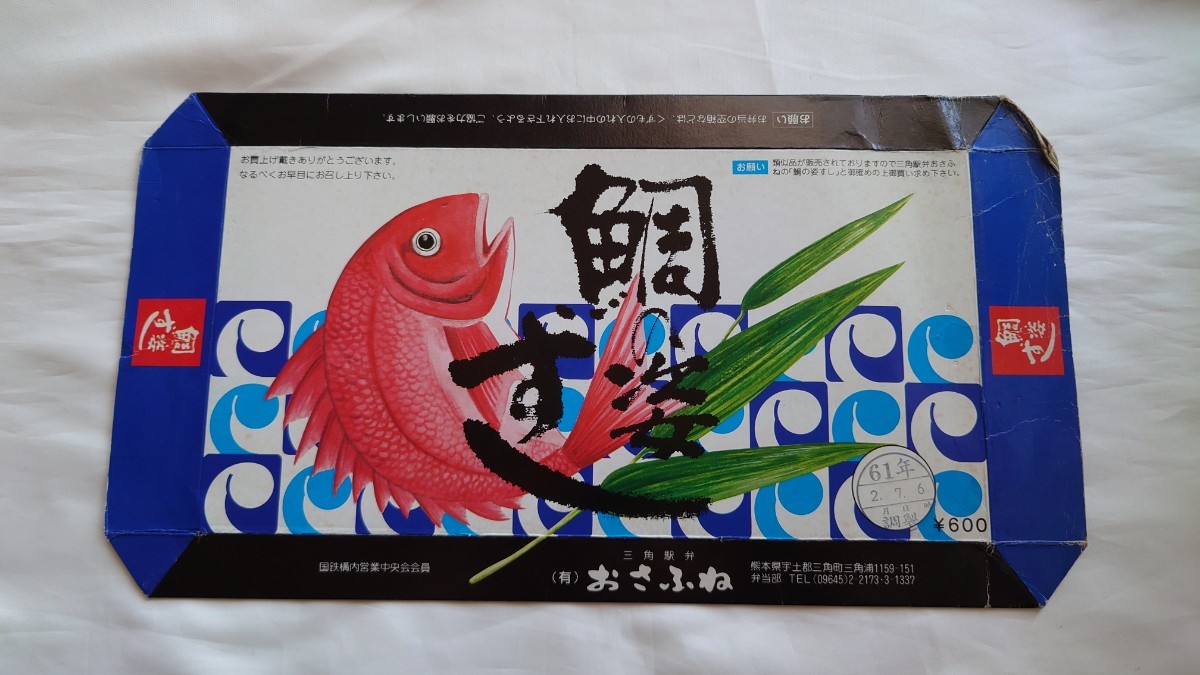 - △おさふね・国鉄三角駅△鯛の姿ずし弁当△駅弁掛け紙