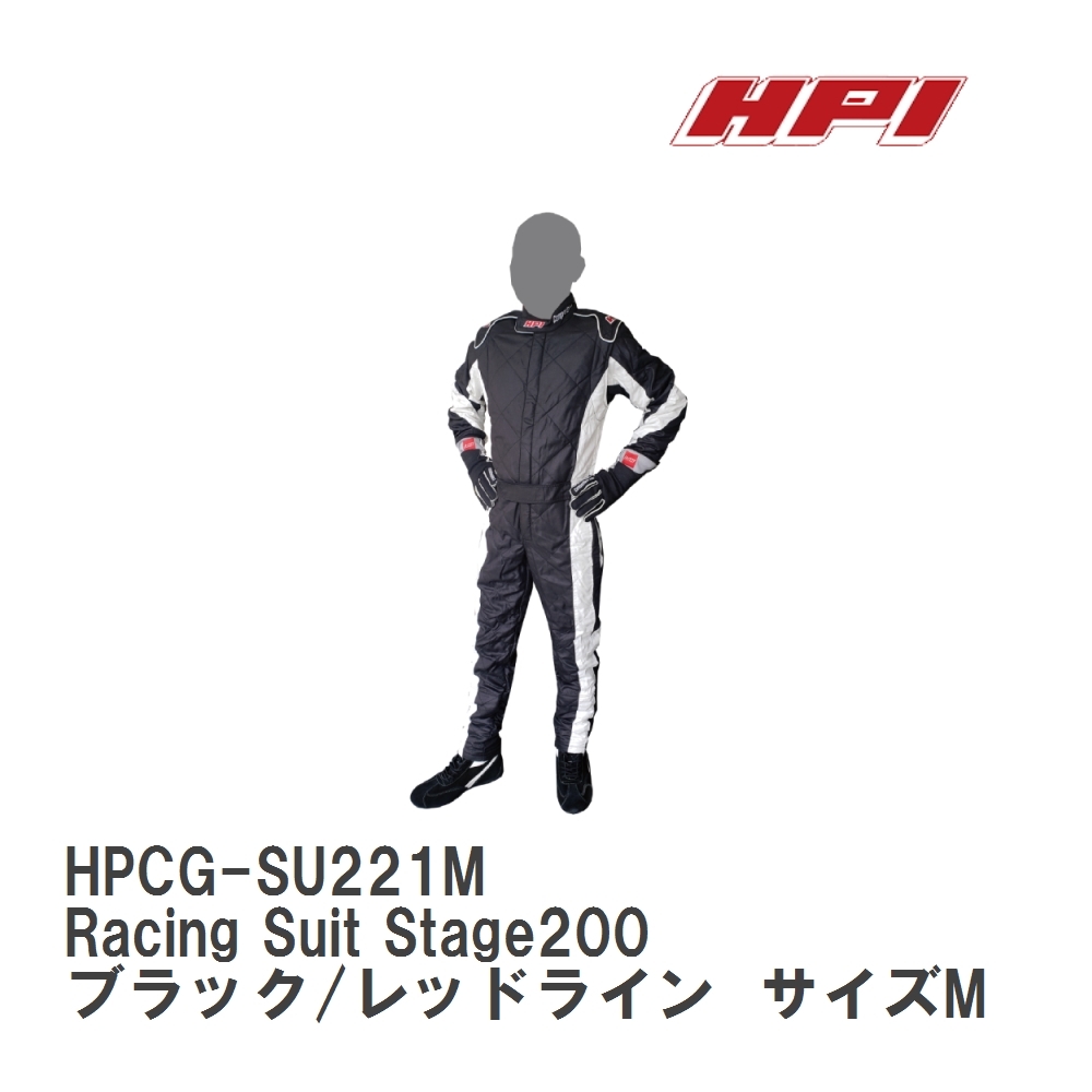 - 【HPI/エイチ・ピ-・アイ】 FIA公認 レーシングスーツ Racing Suit Stage200 ブラック/レッドライン サイズM [HPCG-SU221M]