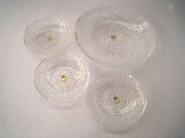 - 硝子の皿 佐々木グラス SASAKI GLASS 大皿1枚+小皿3枚 未使用品 ガラス 食器 /19N9.21-37/22N2.1-38